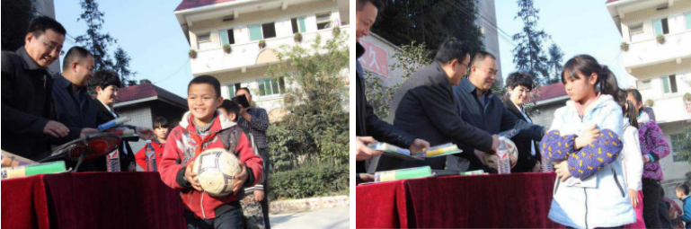 在貴定縣中國運動員希望小學操場,慰問團舉行了“愛心捐贈儀式。儀式上,慰問團將捐贈的籃球、足球、羽毛球、兵乓球、跳繩等體育用品分發(fā)給貧困學生,并給他們組裝了籃球架和兵乓球架,勉勵他們發(fā)奮學習,爭取早日成才,回報社會。中國運動員希望小學校長羅紹明對慰問團的愛心善舉表示感謝,他說到:“中國運動員希望小學地處大山深處,學校大多數學生為農村留守兒童,特困學生較多,社會力量為學校建立體育設備,捐贈體育用品,這豐富了同學們的課余生活,改繼變同學們的世界觀發(fā)揮了非常積極的作用”。同時,他也表示,希望社會各界能夠支持希望小學,關愛留守兒童,關心貧困學生。
